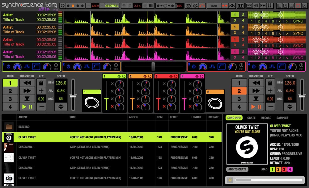 O Torq chegou a idade adulta e compete de igual para igual na categoria profissional de softwares para DJ e produtos de música eletrônica. Agora o Torq 2.0 conta com 4 decks, 13 efeitos internos, um novo recurso de crossfading chamado Traq Morph e funciona com as controladoras mais seletas do mercado e inclusive em modo standalone, sem a necessidade de hardware dedicado algum.